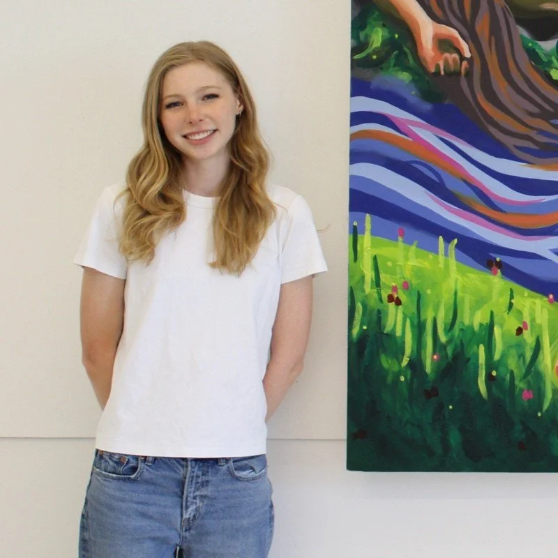 Sidney Hale is a painter from Hampton Roads, Virginia. She attended James Madison University in Harrisonburg, Virginia, receiving a Bachelor of Fine Arts degree in Studio Art. Through vibrant figurative works, Hale investigates the contemporary lesbian experience. Central themes of her work include gender exploration, purity culture, and corporeality.