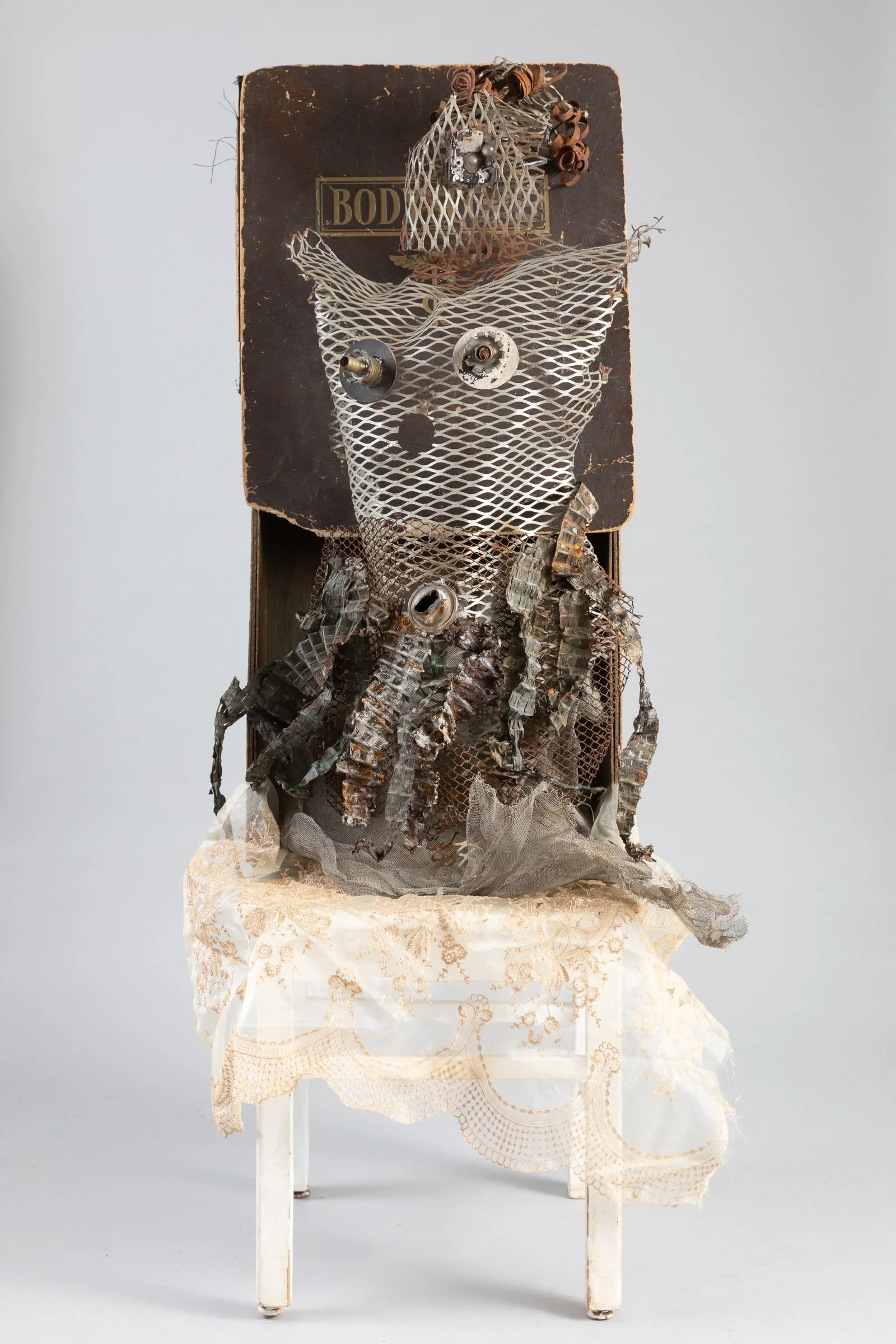 My body of work combines found materials and a touch of off-the-wall imagination to express the joy of play and the lure of storytelling. Strange and unique components of each piece are lovingly chosen to investigate themes of imperfection and impermanence and often touch on my despair and my hope. I reference past and present experiences—some embellished, some imaginary.
