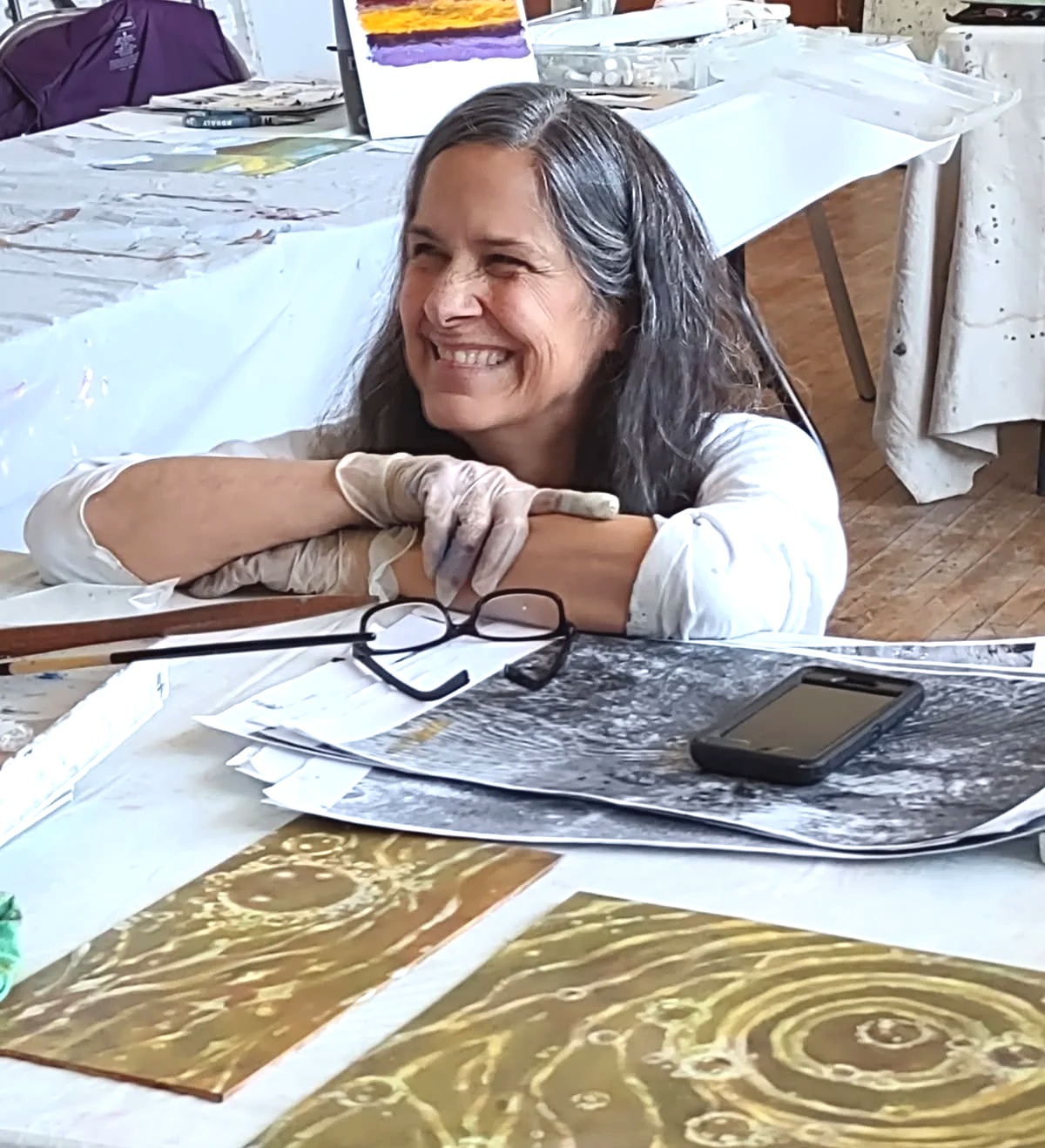 Oil paintings, monotypes and artist's books create a sense of depth, motion or quiet – sometimes with an impression of being on Earth, other times with a feeling of no place at all.