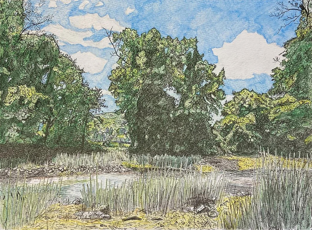 Michael Meredith, Swannanoa, (detail), Watercolor and Ink on Paper